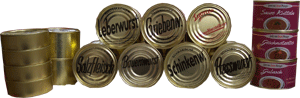 biete ich preiswert in 200 und 400 Gramm Dosen an. Das Angebot umfasst ferner Kutteln und Gulasch auf schwäbische Art. Meine Dosenwurst ist beliebt, schmeckt bei jedem Anlass und eignet sich für rustikale Vesper und Büfetts. Ich verkaufe sie nicht nur in meinem „Stefans-Wurstlädle“, sondern auch über Bauernhöfe, Wochenmärkte und Lebensmittelgeschäfte (Wiederverkäufer).
